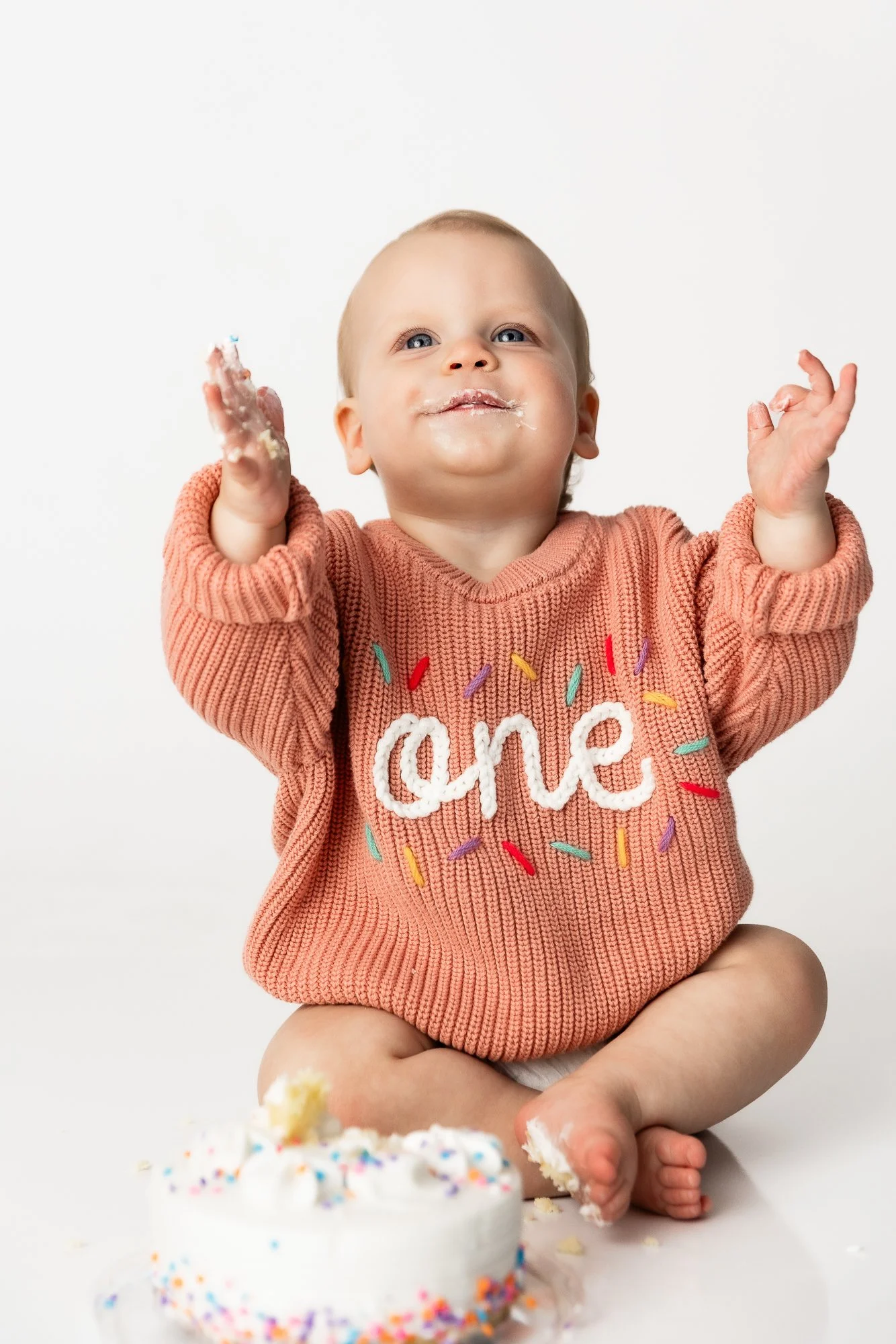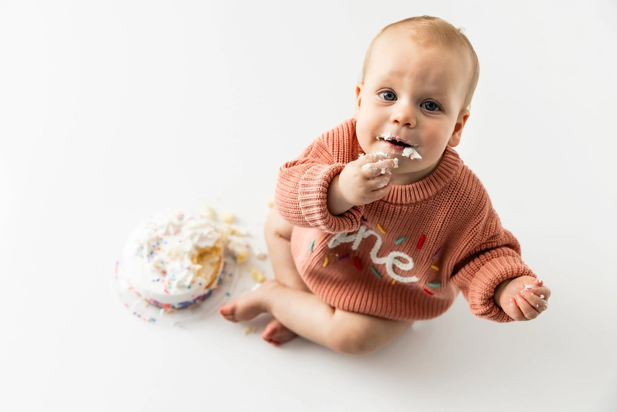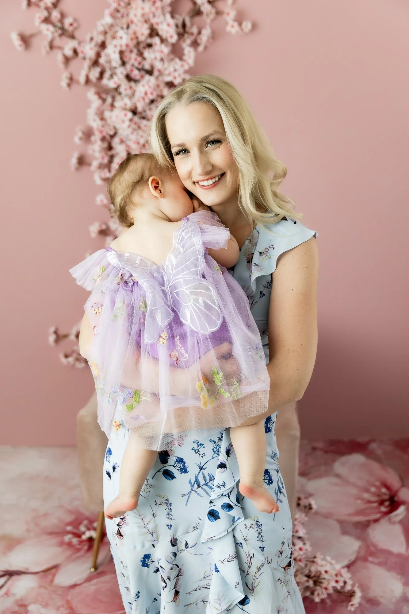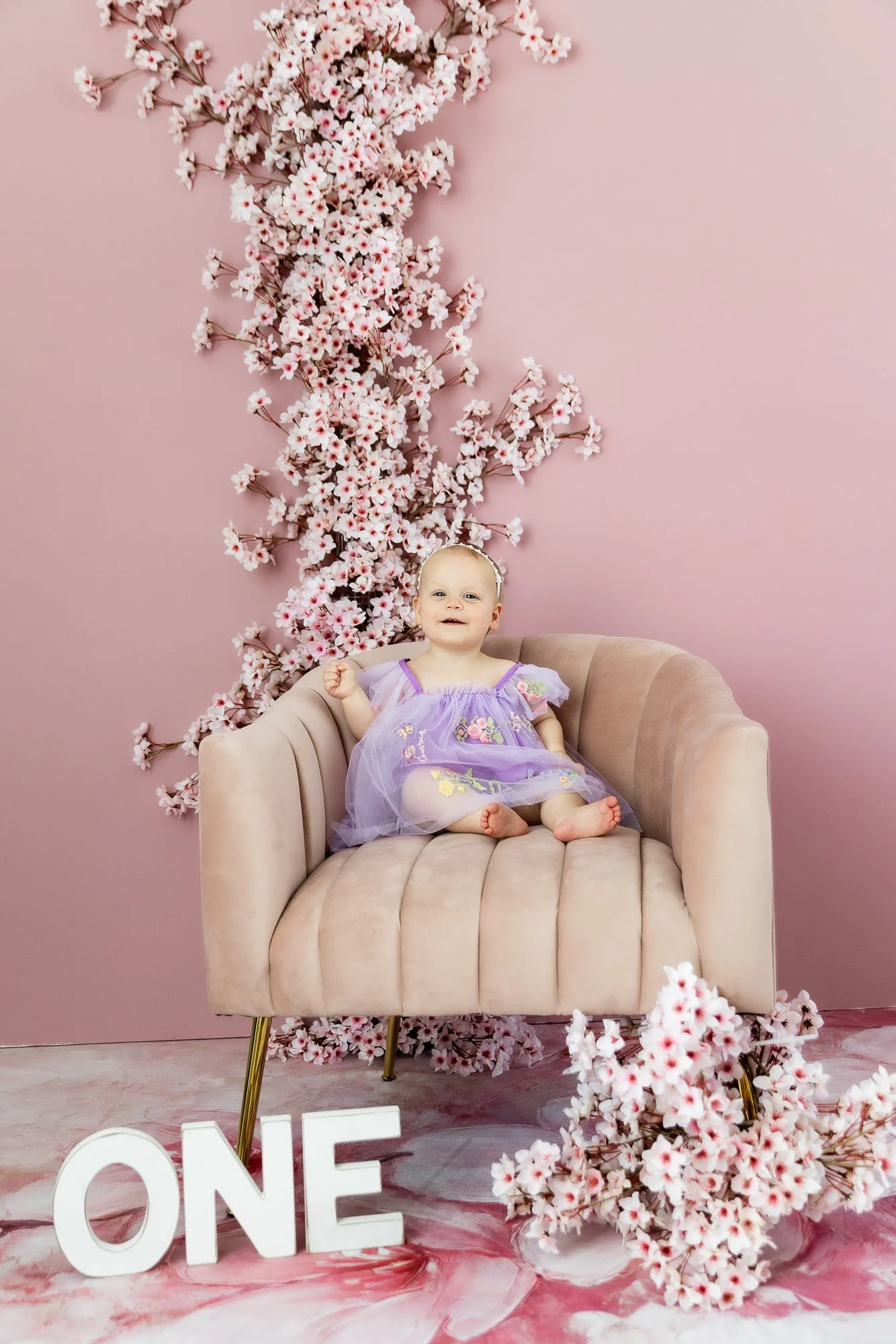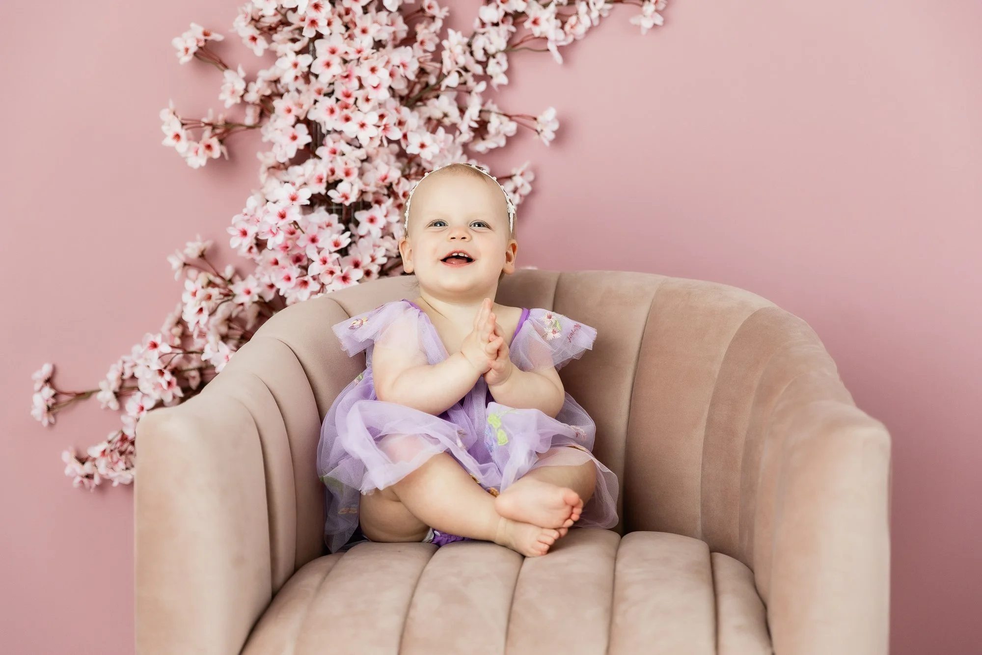 We also used the new permanent spring pink floral wall recently added to the studio, which made her session even brighter and more playful. From her sweet smiles to her cake smash, she was an absolute doll to photograph.
