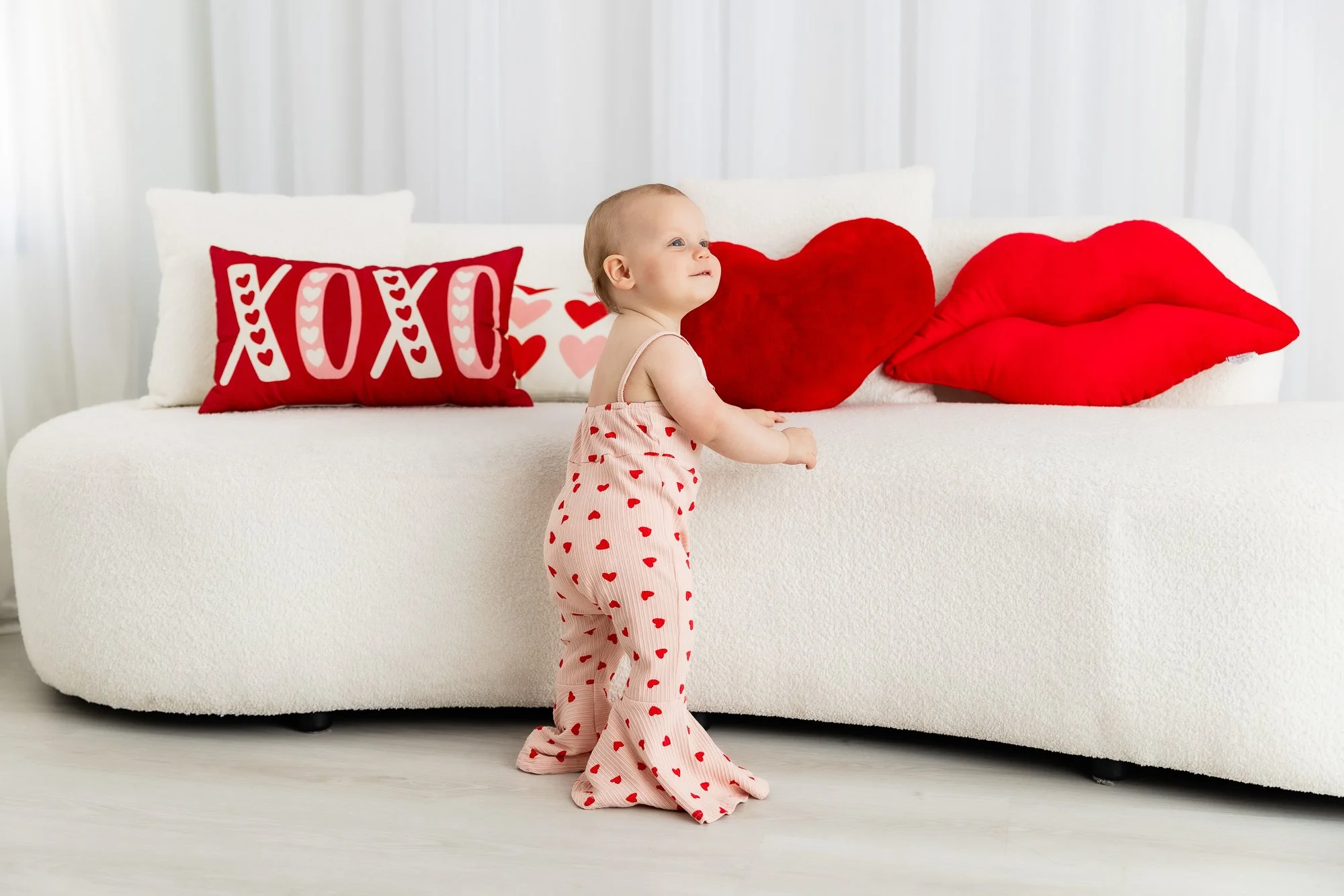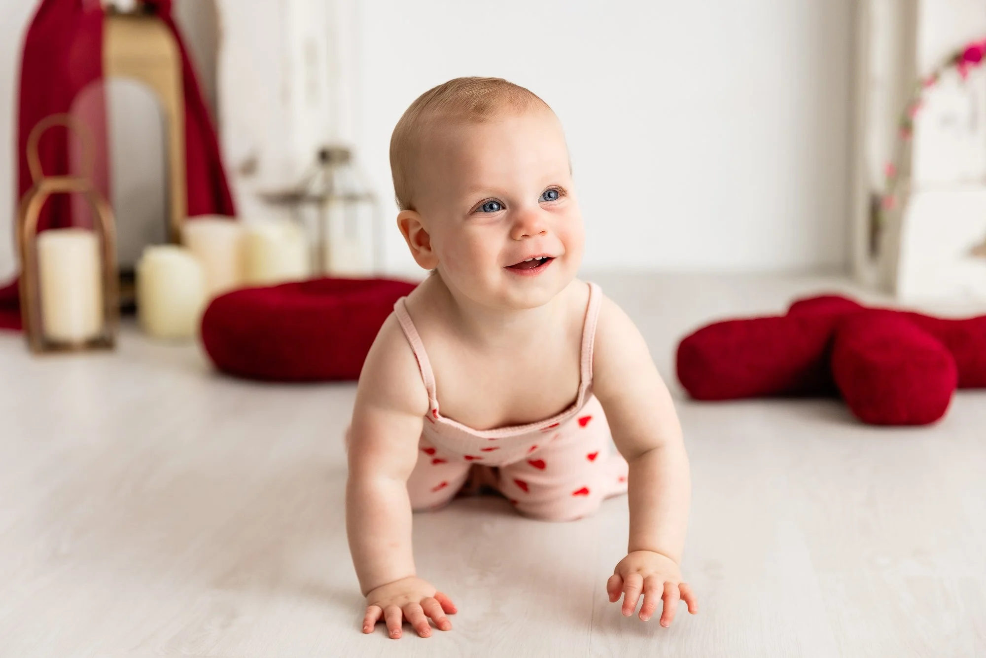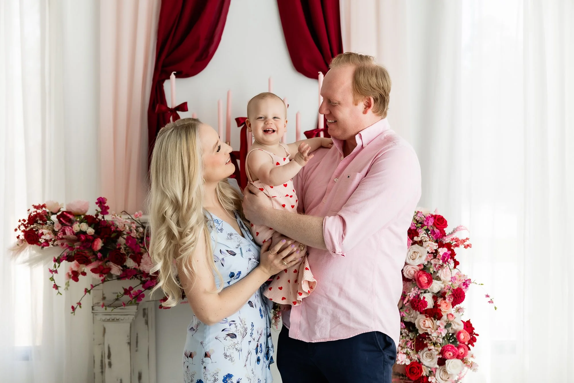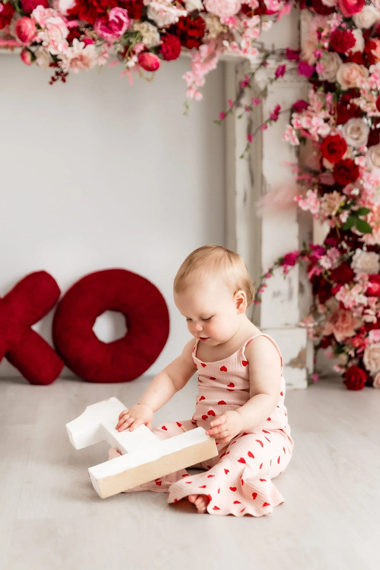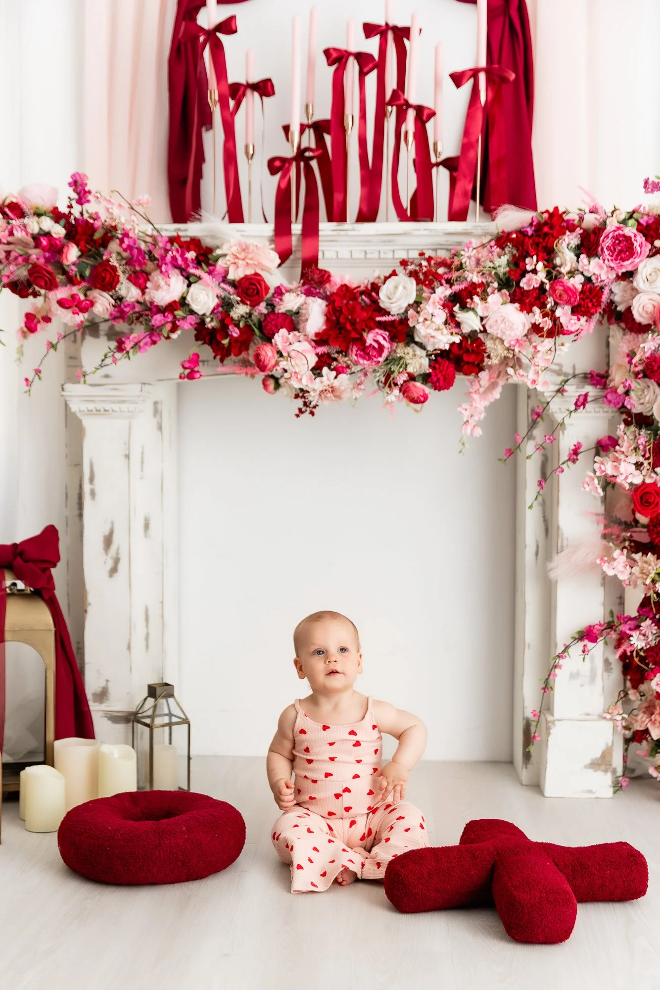 I so enjoyed photographing Erin, Jeremy, and their sweet little girl Sutton, who just turned one! Since Sutton’s birthday is close to Valentine’s Day, the Valentine’s themed studio set was the perfect backdrop for her one year milestone portraits.