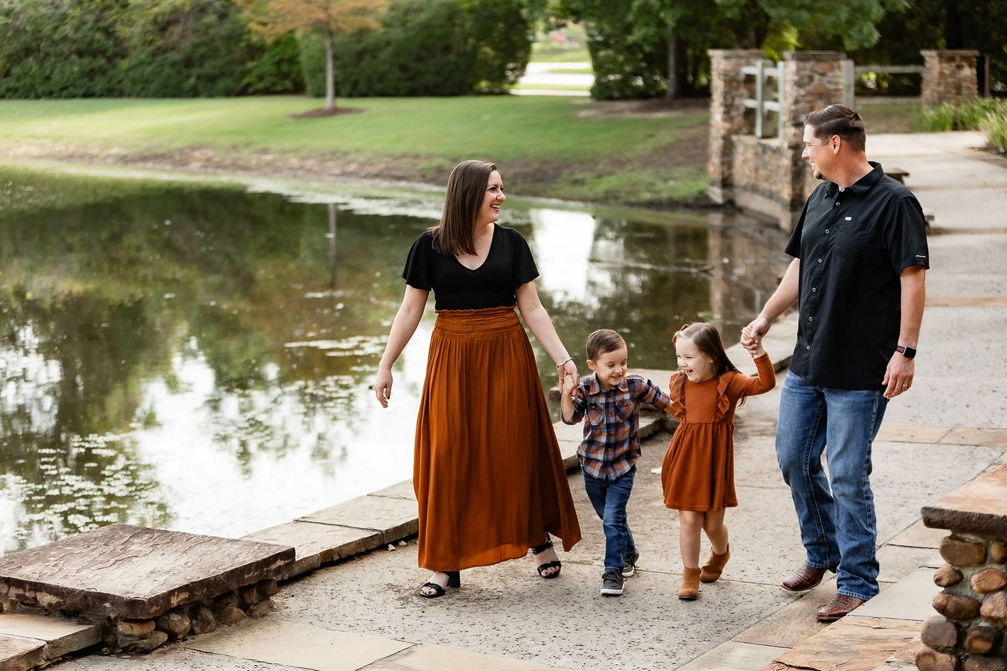 Rob Fleming Park in The Woodlands, TX - A beautifully maintained park with winding paths, stone steps, and lush greenery. The pond and thoughtfully designed spaces make it a versatile spot for photos of all kinds.