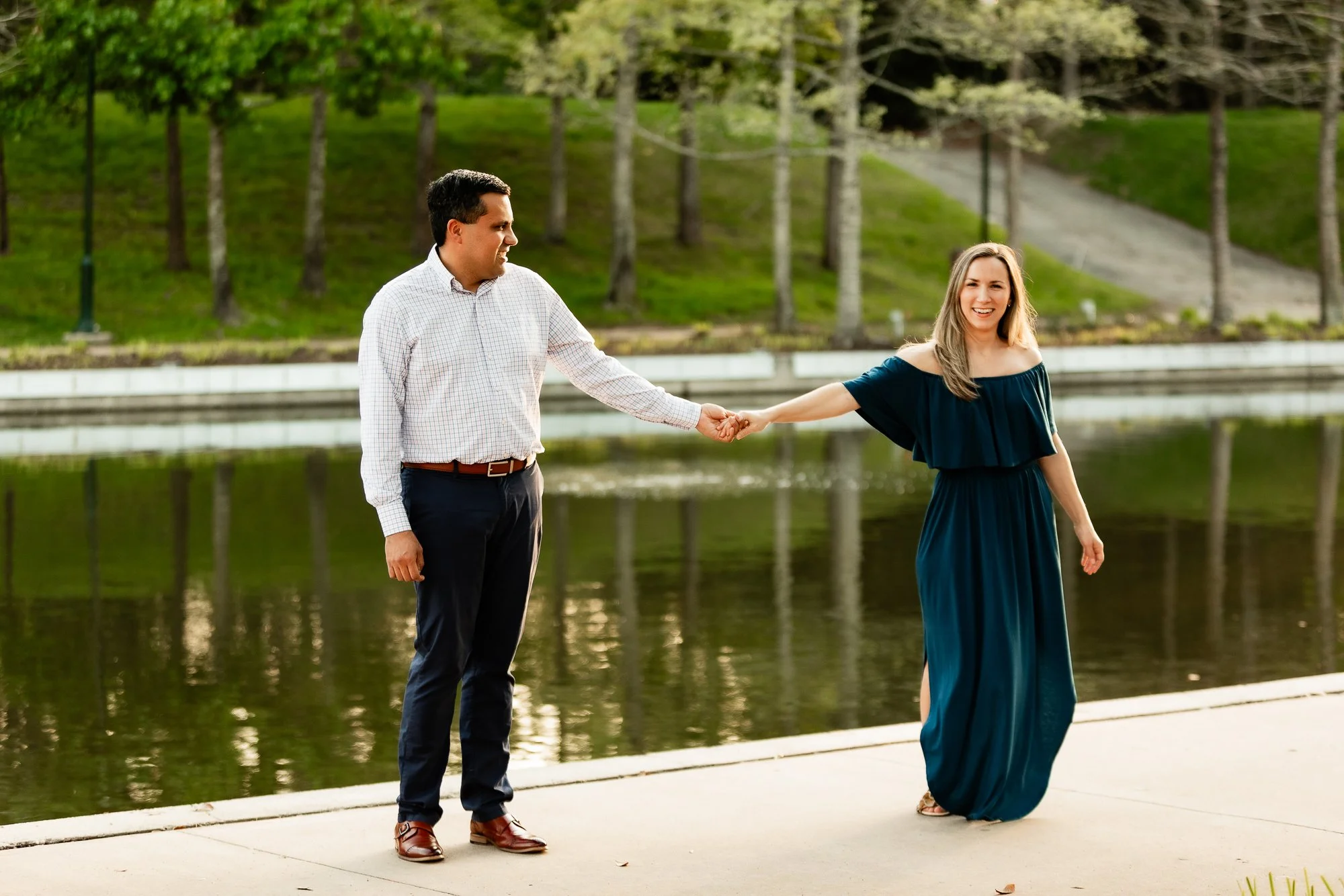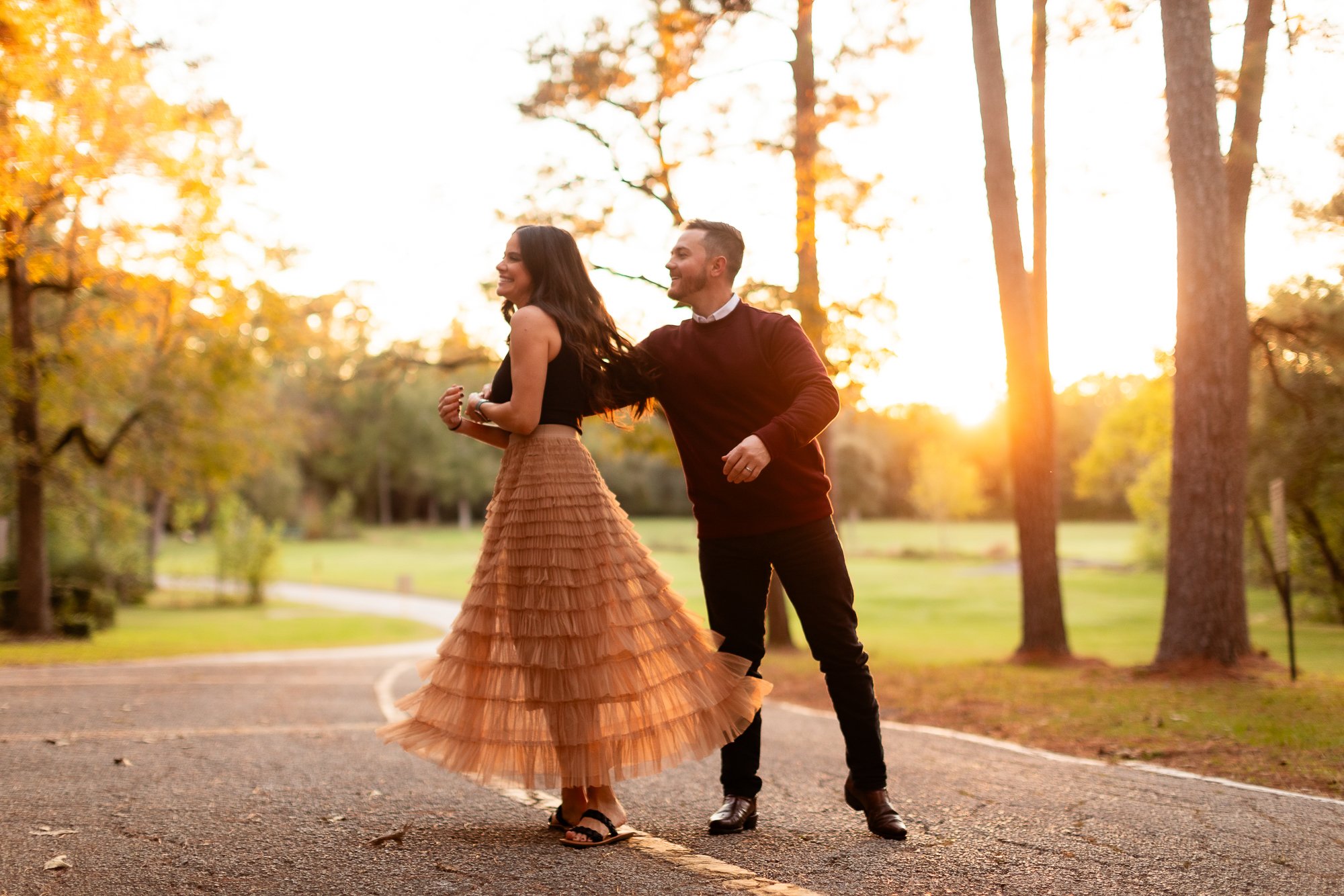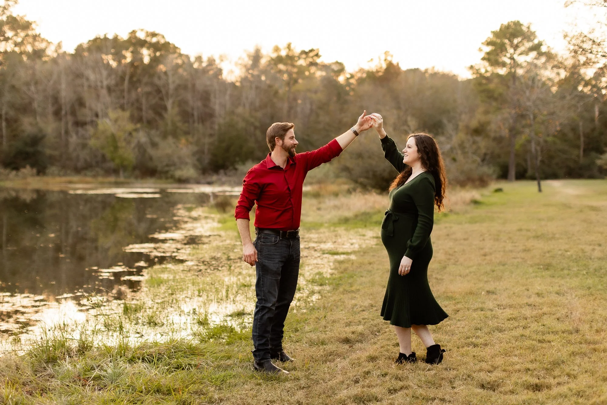 Spring Creek Park – Tomball, TX (Not to be confused with Spring Creek Greenway Nature Preserve!) This hidden gem in Tomball, TX is full of lush greenery, winding roads, creeks, and open grassy areas. Its relaxed, nature-filled vibe makes it the perfect spot for capturing authentic outdoor moments and letting your personalities shine.